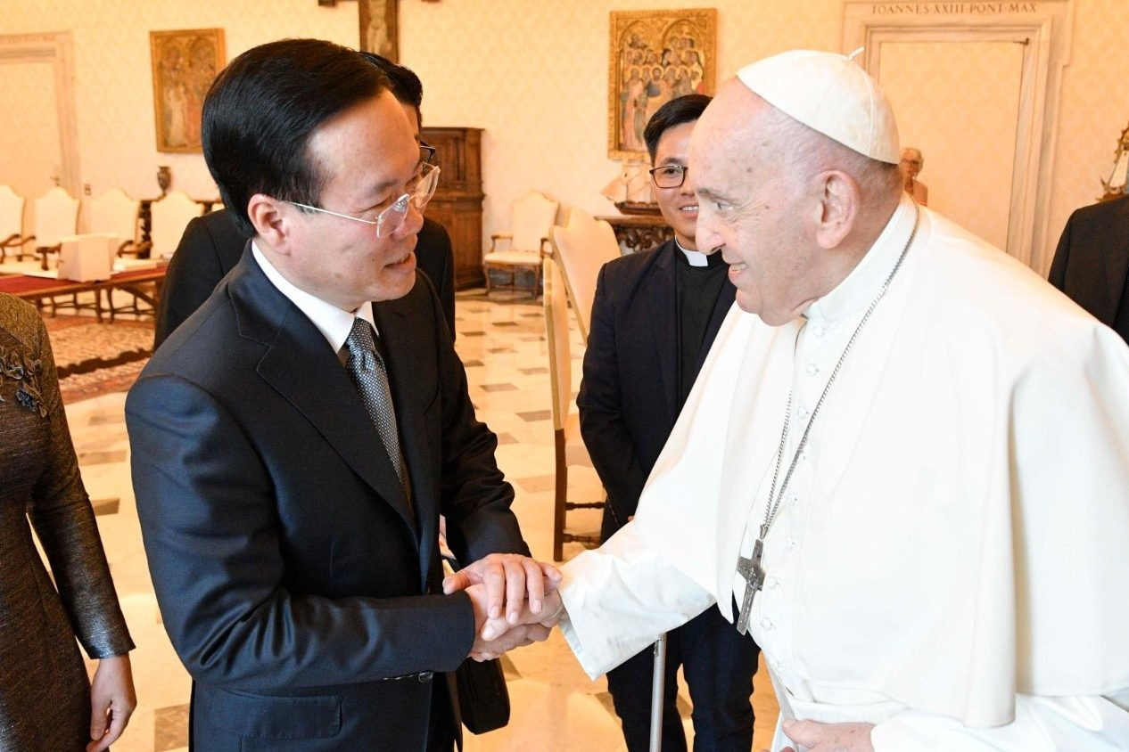 Chủ tịch nước Võ Văn Thưởng nhấn mạnh coi trọng vai trò của Tòa thánh trong vấn đề toàn cầu và mong muốn Tòa thánh phát huy tiếng nói góp phần hòa giải xung đột, gìn giữ hòa bình, phát triển bền vững, thúc đẩy tình đoàn kết, hữu nghị, hợp tác trên thế giới.