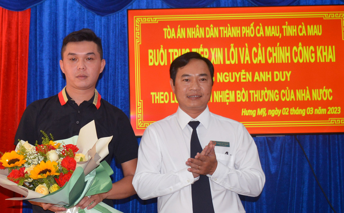 Sau buổi xin lỗi công khai này, TAND TP Cà Mau sẽ đăng báo xin lỗi, cải chính và thương lượng bồi thường thiệt hại theo quy định pháp luật cho anh Duy.
