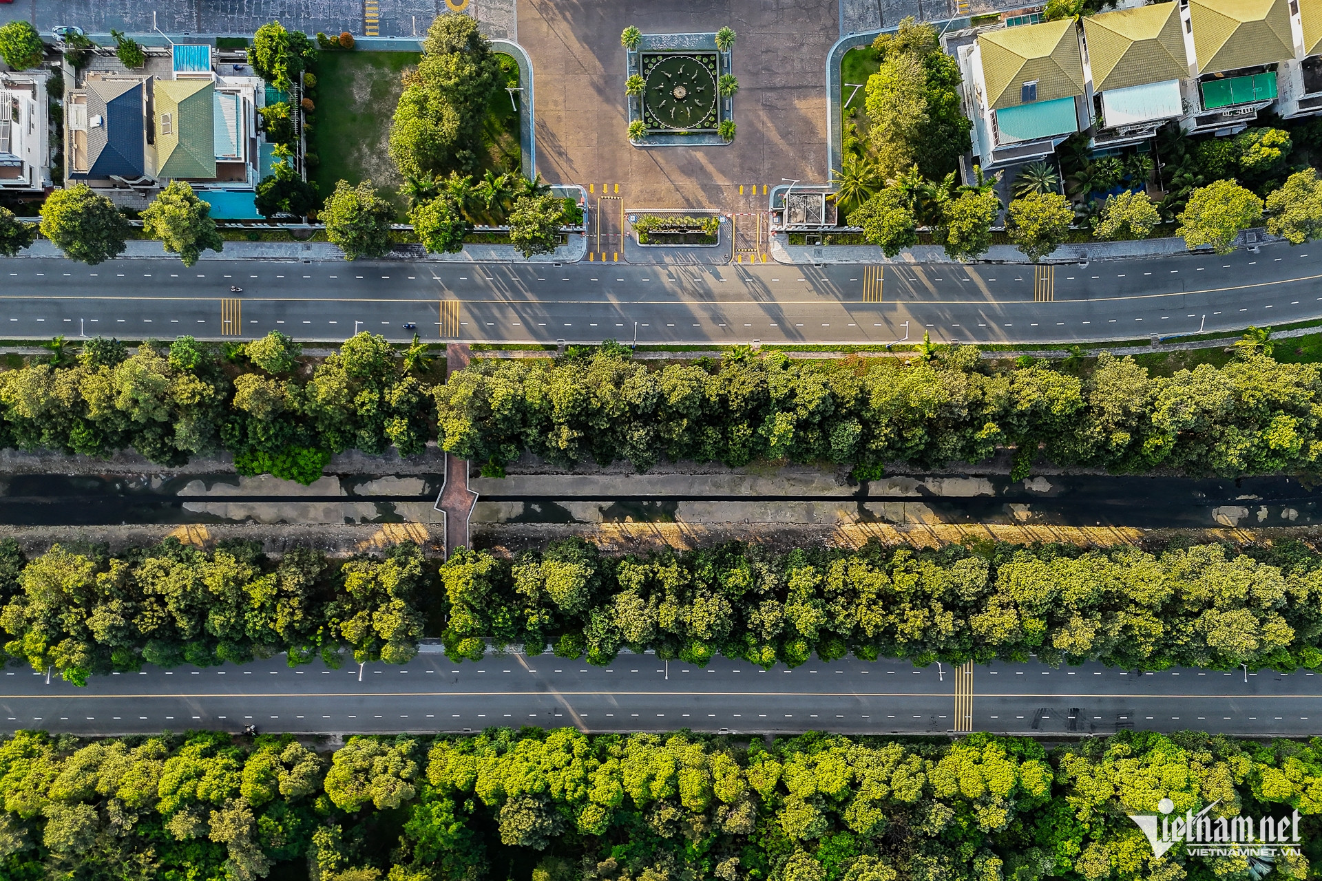 Nhìn từ trên cao, TP Thủ Dầu một giáp với sông Sài Gòn chảy uốn lượn với hạ tầng giao thông đô thị phát triển.