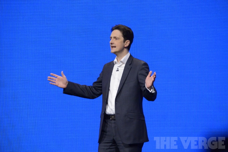 2:15: Ông David Park, người phụ trách bộ phận di động của Samsung, xuất hiện trên sân khấu khổng lồ để chào đón chúng ta đến với sự kiện Samsung Unpacked 2014.