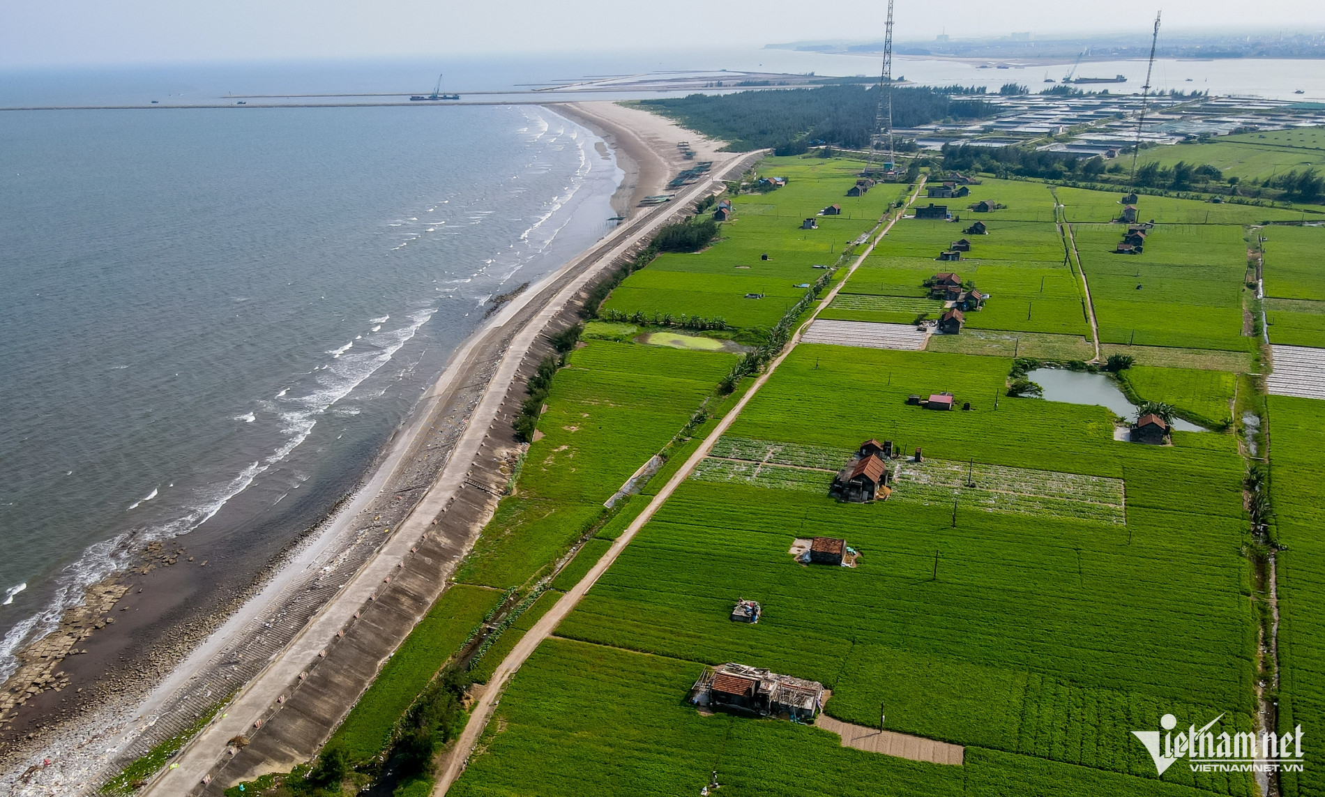 Bãi biển thị trấn Thịnh Long, huyện Hải Hậu (trái) và khu đóng tàu tại làng Phú An, huyện Trực Ninh (phải)