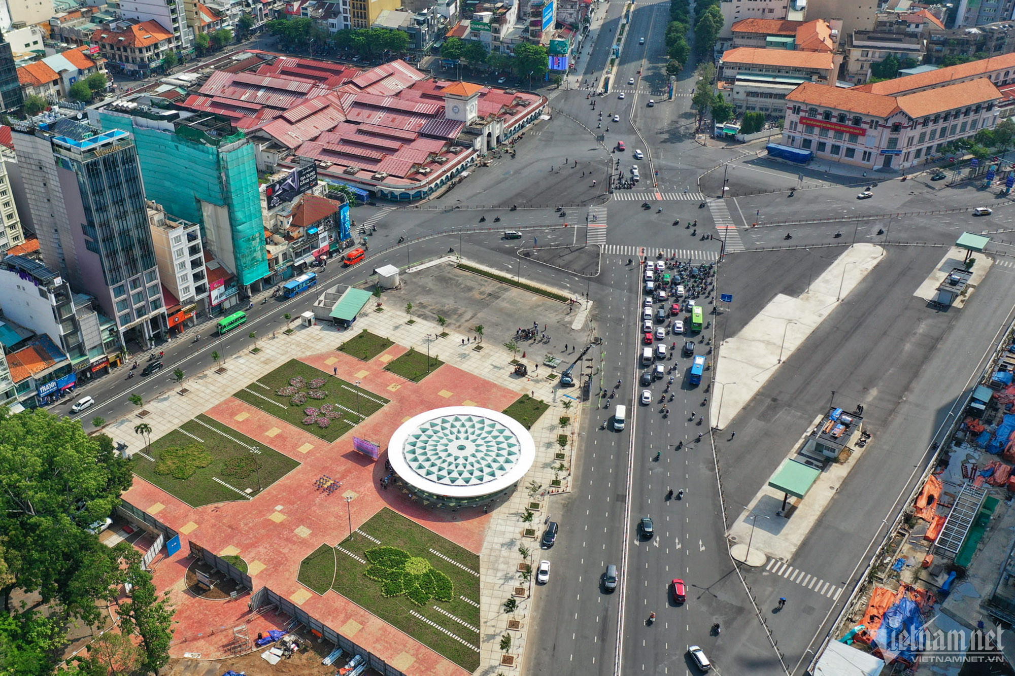 Ga ngầm Bến Thành nhìn từ trên cao, trung tâm nhà ga là giếng trời hình bông sen nổi bật. Nhà ga trung tâm Bến Thành được khởi công xây dựng từ tháng 11/2016 nằm trong tuyến metro số 1 dài 19,7 km có tổng mức đầu tư hơn 43.700 tỷ đồng, từ ga Bến Thành (Q.1) đến depot Long Bình (TP Thủ Đức) với 3 ga ngầm và 11 ga trên cao.