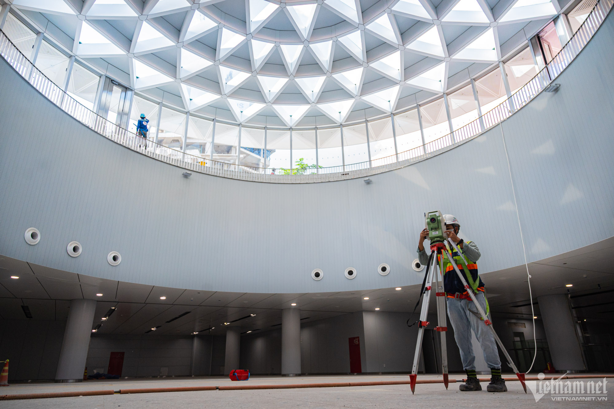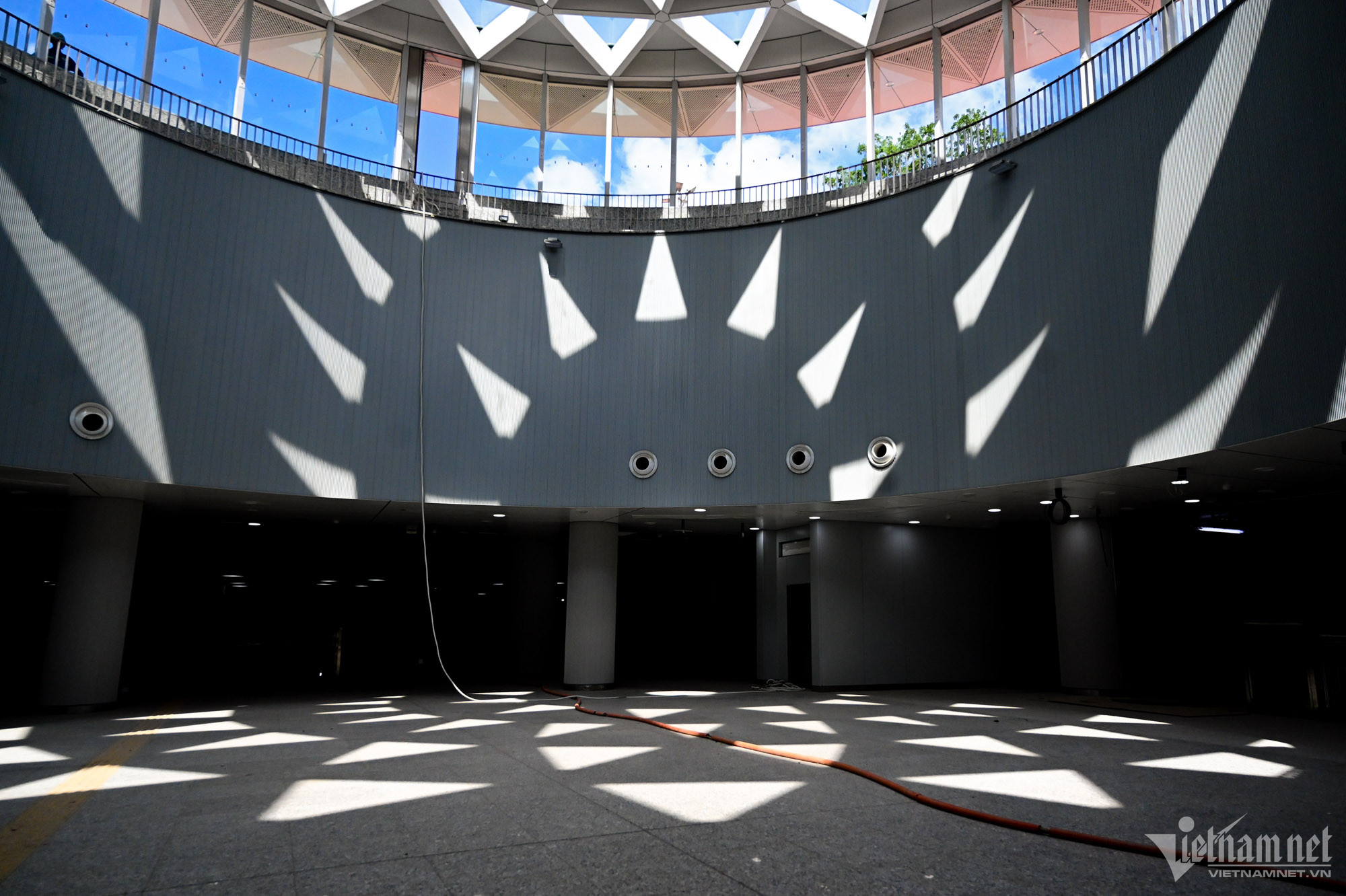 Giếng trời đã hoàn thành toàn bộ phần kiến trúc để đón nắng chiếu qua khung kính xuống hầm theo hình bông sen.