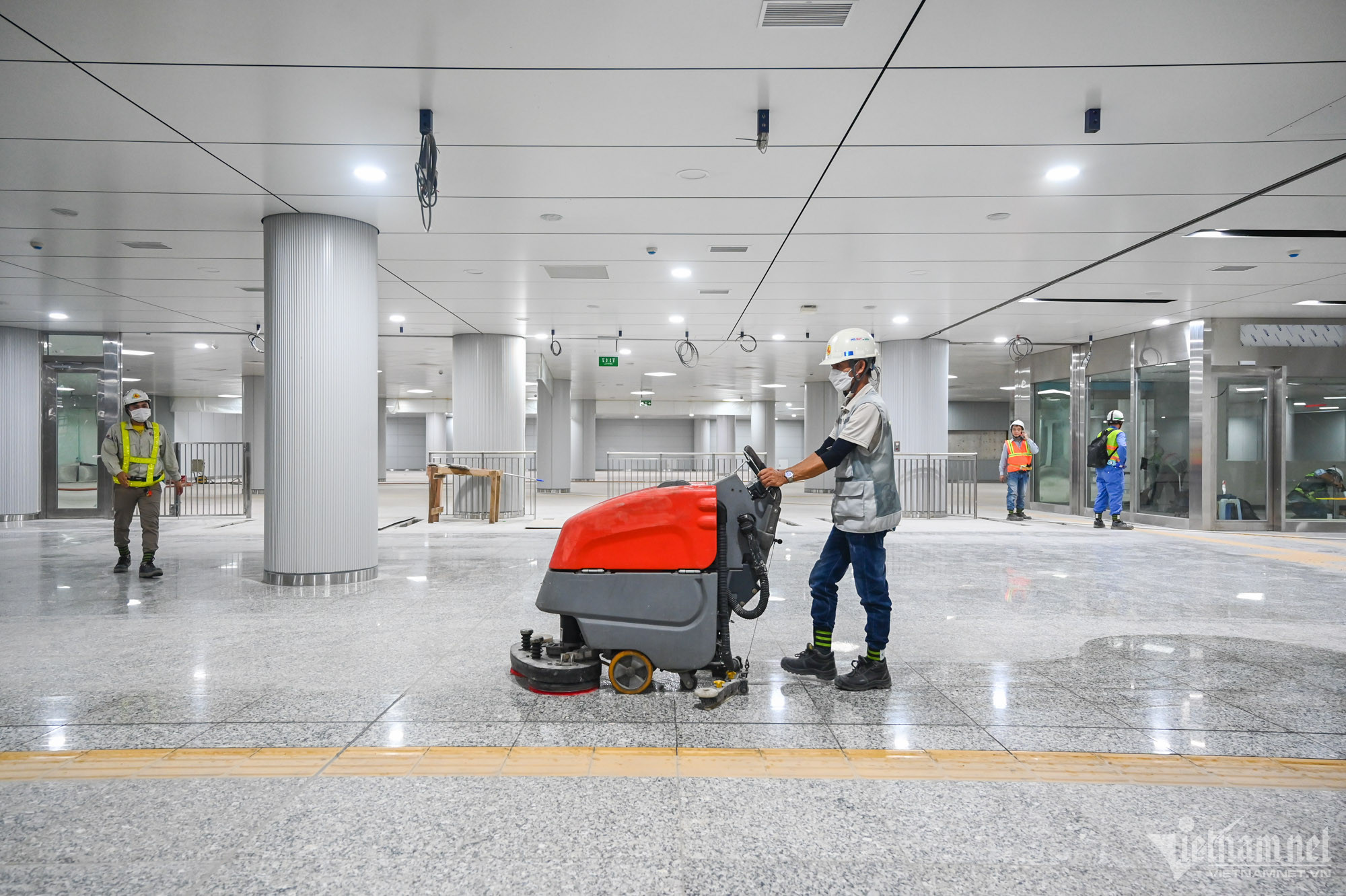 Đội ngũ kỹ sư, công nhân của nhà thầu đang khẩn trương thi công, dọn vệ sinh để cùng kịp thời hoàn thành toàn dự án tuyến metro số 1 vào cuối quý 4 năm nay.