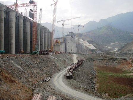 Thời điểm thi công dự án, có những lúc trên công trường có tới hơn 10.000 công nhân thường xuyên làm việc; hơn 16,6 triệu mét khối đất đá được đào xúc; hơn 20 triệu mét khối đất đá được vận chuyển; đầm hàng triệu mét khối đất nền, đổ gần 6 triệu mét khối bê-tông; lắp đặt 115.000 tấn thiết bị…