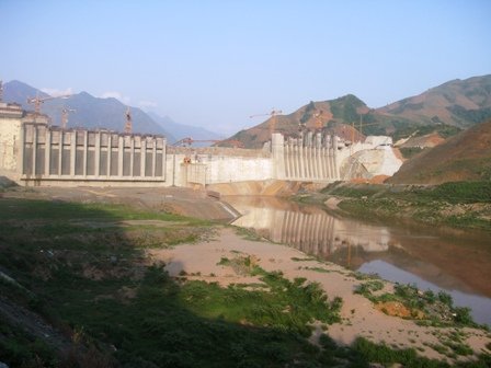 Công trường thủy điện Sơn La thời điểm thi công thân đập.