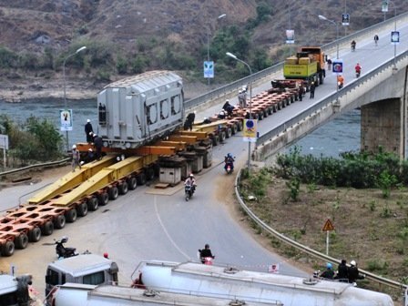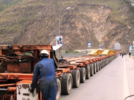 Vận chuyển thiết bị siêu trường siêu trọng nặng 280 tấn bằng phương pháp trailer với hệ thống giảm tải bằng các “tấm đệm” thủy lực được đặt trên hơn 120 bánh xe vào thời điểm cuối tháng 2/2011. Đây là phương pháp tối ưu để đưa những thiết bị siêu trường siêu trọng vào nhà máy.