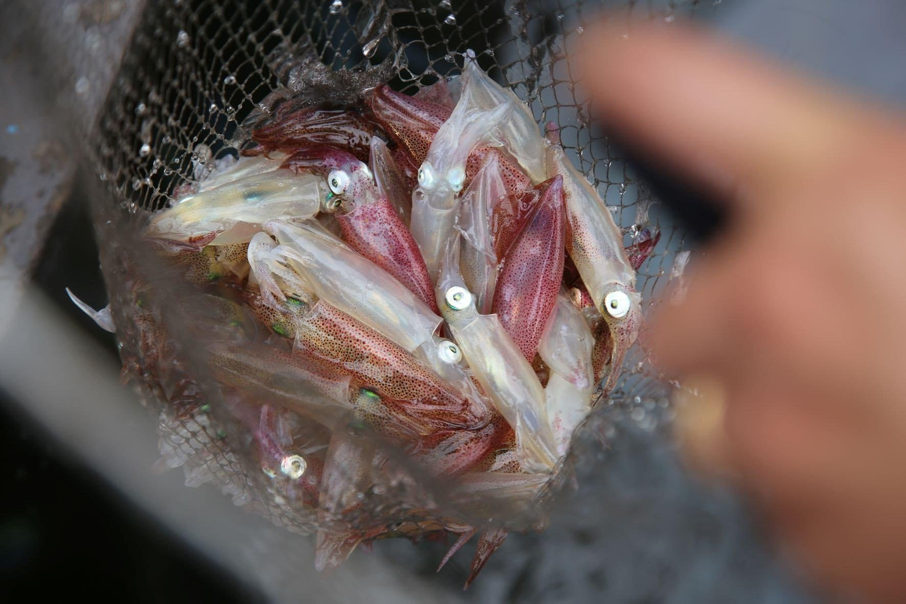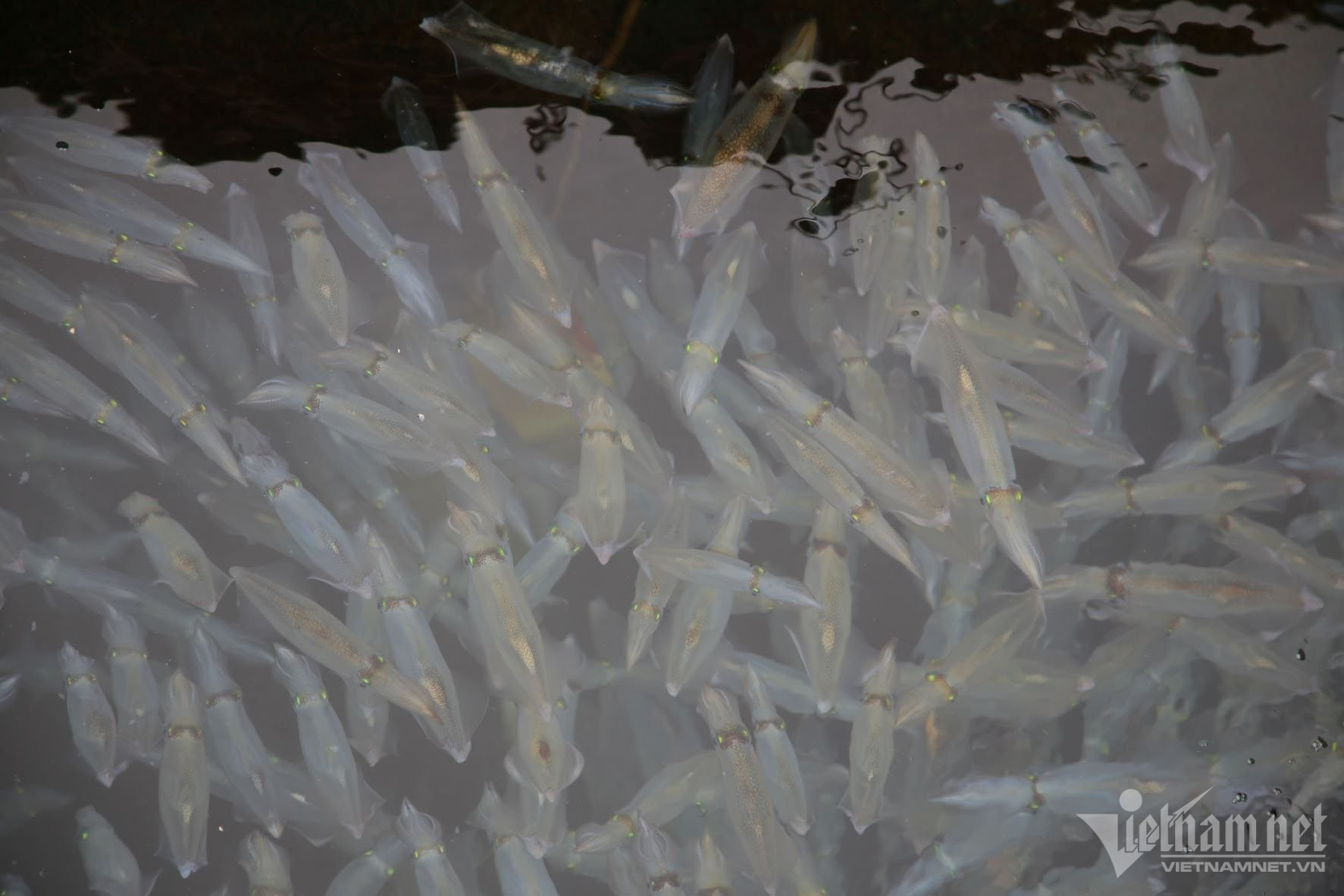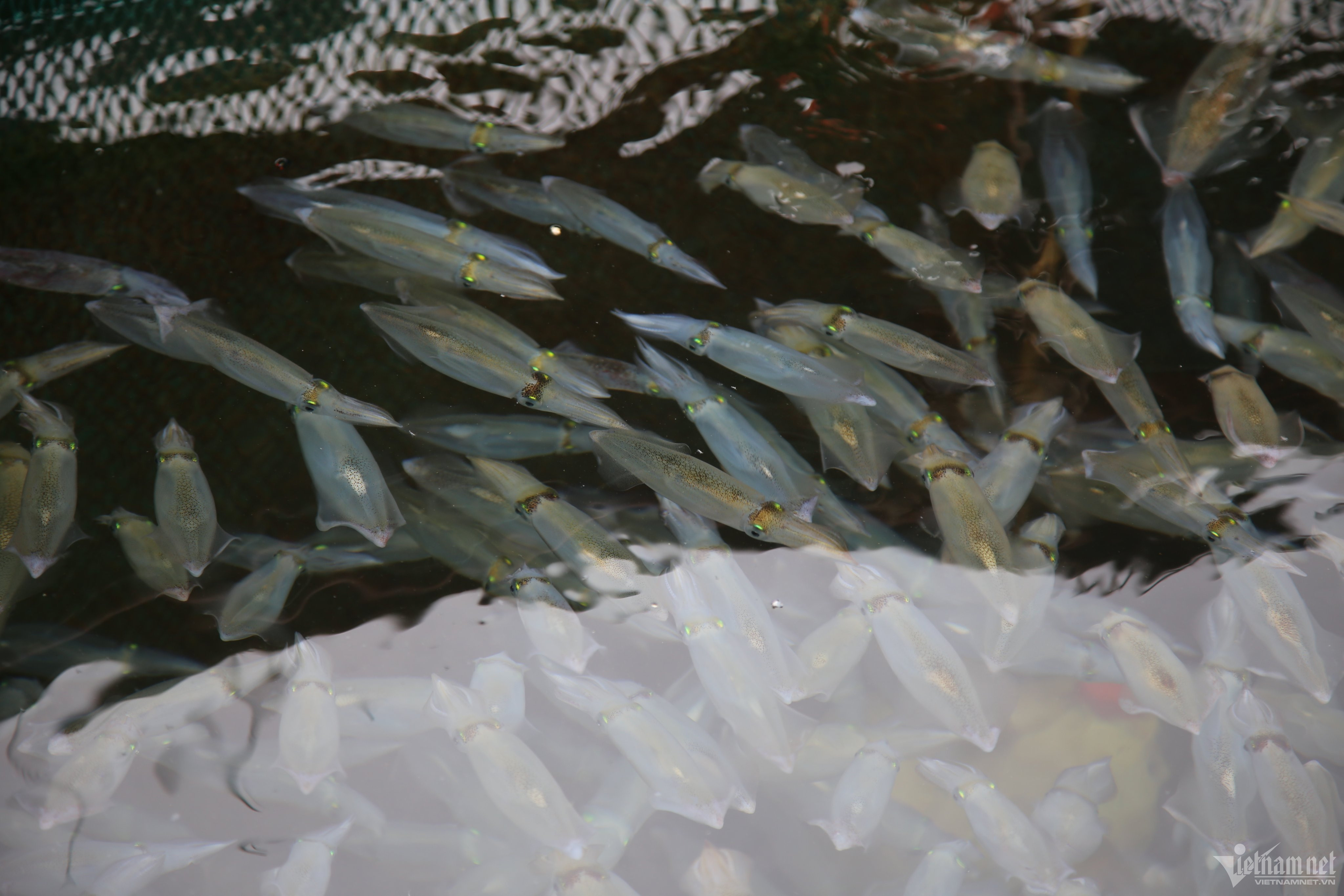 Mực nhảy sau khi vớt từ âu thuyền lên, tươi sống, bật nhảy tanh tách. Mỗi kg mực dao động từ 700.000-800.000 đồng nhưng những ngày cao điểm đều cháy hàng.