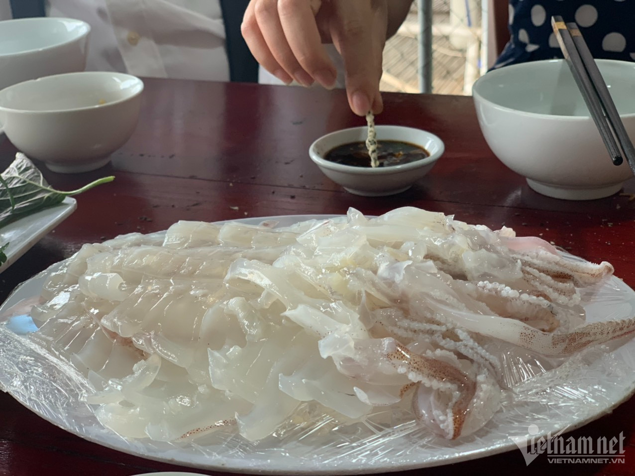 Ông Chu Minh Độ (65 tuổi, chủ nhà hàng bè nổi Độ Tuyết), cho biết, mực nhảy sống ở vùng biển đặc trưng, có độ tươi và hương vị đậm đà.