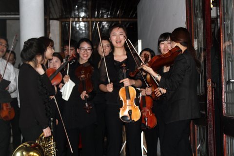 Các nhạc công của dàn nhạc thành phố Busan có tuổi đời khá trẻ. Trong giờ giải lao, họ tụ tập thành từng nhóm và liên tục chỉnh lại dây đàn để chuẩn bị cho phần 2. Trước khi vào chương trình, một nhạc công violin liên tục vẫy tay và cười với nhóm khán giả nhí trên tầng 2 của khán phòng. Không khí của buổi hòa nhạc rất cởi mở và thân thiện.