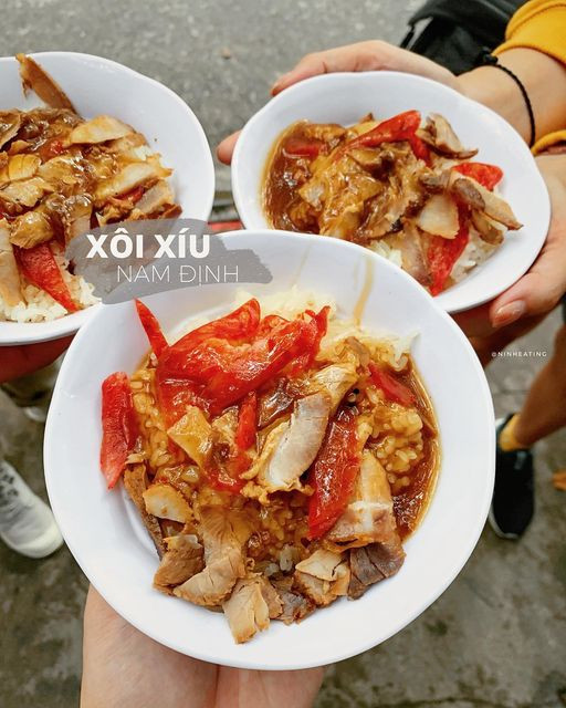 Xôi xíu gồm xôi trắng ăn kèm với thịt xá xíu mềm ngon, nóng hổi và lạp xưởng hòa quyện với nước sốt sột sệt thơm ngon tạo nên hương vị không thể lẫn với bất cứ món xôi nào khác. Vị dẻo thơm của gạo nếp, vị bùi bùi ngọt của lạp xưởng và thịt xá xíu cộng thêm vị cay cay, đậm đà của nước sốt sẽ giúp du khách “ấm lòng” trong những ngày trời hơi se lạnh.