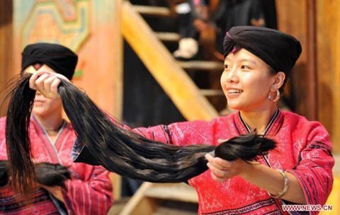 Những phụ nữ Dao Đỏ ở Huangluo để tóc dài như vậy vì họ tin rằng chúng sẽ mang lại tuổi thọ, sức khỏe và may mắn, tóc càng dài thì vận may càng nhiều.