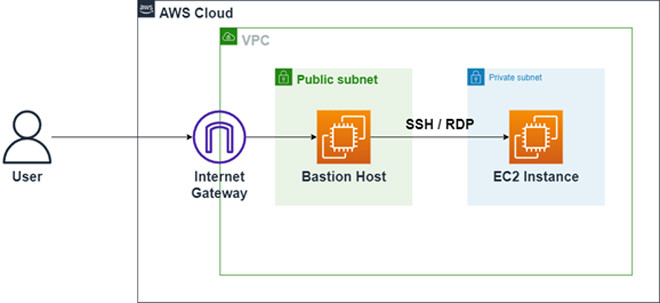 Theo đại diện CMC Telecom, khi các doanh nghiệp triển khai các dự án chuyển đổi số trên AWS thì việc đảm bảo bảo mật và kết nối an toàn vào các tài nguyên trong môi trường mạng riêng ảo từ Internet là một trong những vấn đề ưu tiên hàng đầu. Thông thường, chúng ta sẽ phải kết nối với Bastion Host có địa chỉ IP public qua một Internet Gateway (IGW) và từ Bastion Host tiếp tục truy cập vào các tài nguyên trong private subnet bằng SSH hoặc RDP.