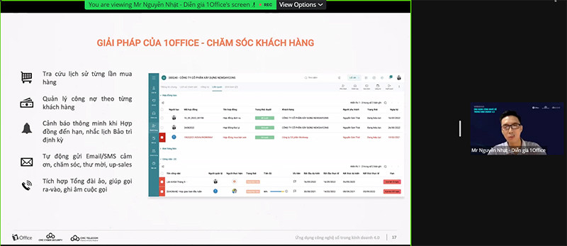 Đi sâu hơn vào những cách quản trị vận hành để nâng cao hiệu suất - Ứng dụng quản lý thông tin khách hàng, hợp đồng - quy trình công việc để xử lý công việc, đại diện 1Office, anh Phạm Minh Phong với kinh nghiệm kinh doanh của bản thân đã có những chia sẻ giúp doanh nghiệp gia tăng doanh thu, tiết kiệm chi phí và đưa ra hệ thống báo cáo quản trị trước và trong bán.