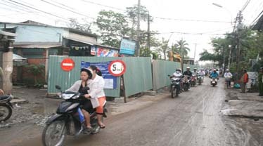 Bà Lê Thị Thu Thúy (41 tuổi ngụ tại P.28, Q.Bình Thạnh) cho biết trong lúc chị đưa con là cháu Nguyễn Thị Ngọc Nguyên (16 tuổi) cùng đến cơ quan làm việc trên xe gắn máy đã bất ngờ hứng trọn tấm tôn dùng làm rào chắn lô cốt.