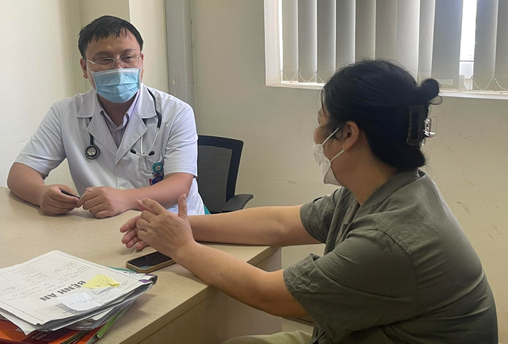 Tiến sĩ Phạm Anh Tuấn, Bệnh viện K (Hà Nội), tư vấn cho một bệnh nhân. Ảnh: Phương Thúy.