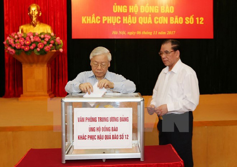 Tổng bí thư Nguyễn Phú Trọng; nguyên Tổng bí thư Nông Đức Mạnh; các đồng chí nguyên lãnh đạo Đảng, Nhà nước cùng cán bộ, công chức, viên chức, người lao động của cơ quan Văn phòng Trung ương Đảng đã tham dự, quyên góp ủng hộ đồng bào các tỉnh miền Trung, Tây Nguyên và Nam Trung Bộ, mỗi người ít nhất một ngày lương. Số tiền ủng hộ sẽ góp phần hỗ trợ đồng bào khắc phục hậu quả do mưa lũ gây ra, giảm bớt khó khăn, nhanh chóng khôi phục sản xuất, sớm ổn định cuộc sống.