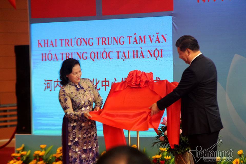 Tổng Bí thư, Chủ tịch Trung Quốc Tập Cận bình tới dự lễ khánh thành Cung hữu nghị Việt - Trung và Lễ khai trương Trung tâm Văn hóa Trung Quốc tại Hà Nội cùng Chủ tịch Quốc hội Nguyễn Thị Kim Ngân.
