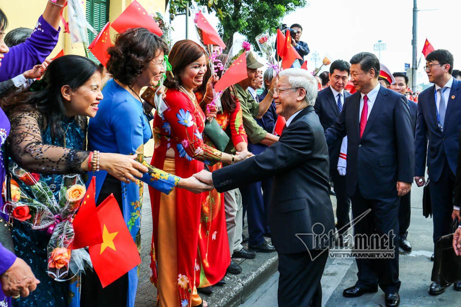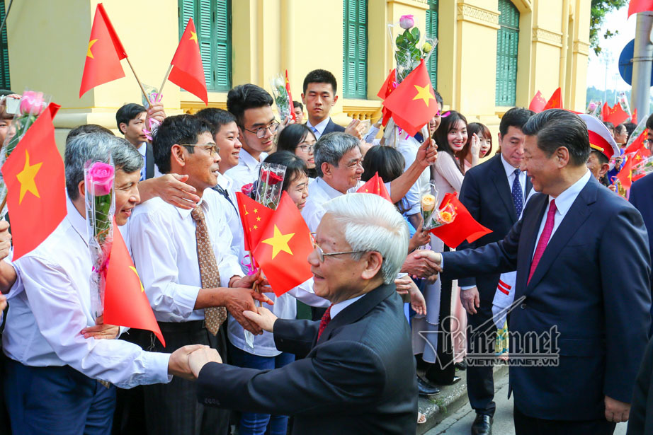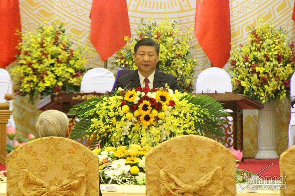 Tổng bí thư, Chủ tịch Trung Quốc Tập Cận Bình bày tỏ: "Sau 2 năm quay trở lại đất nước đẹp đẽ và rộn ràng này, tôi một lần nữa cảm nhận được tình cảm nồng thắm mà nhân dân Việt Nam dành cho nhân dân Trung Quốc. Trong giờ phút vui mừng 2 bên sum họp tại đây, tôi xin chân thành cảm ơn sự tiếp đón nhiệt tình hữu nghị của Đảng, Chính phủ và nhân dân Việt Nam".