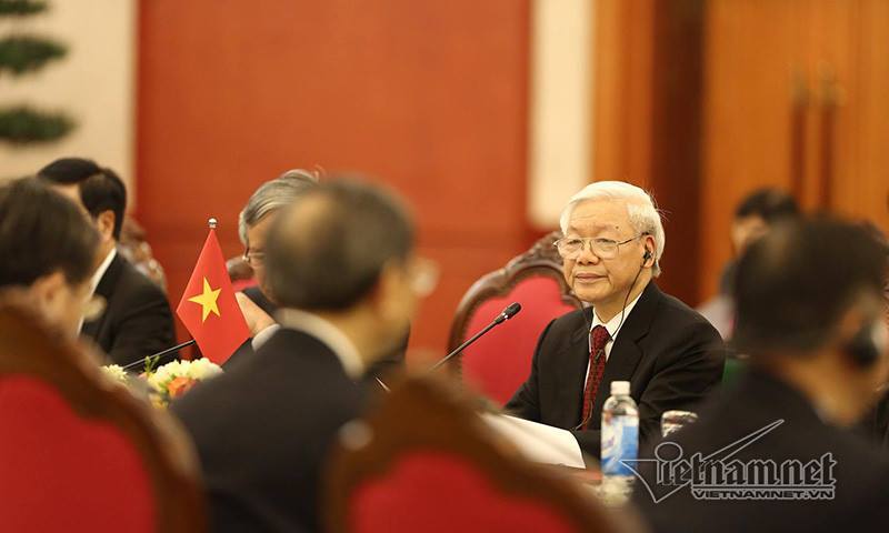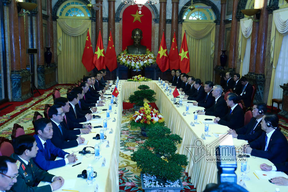 Tổng bí thư, Chủ tịch Trung Quốc Tập Cận Bình nhấn mạnh tình hình khu vực và quốc tế tiếp tục diễn biến phức tạp và sâu sắc, sự nghiệp cải cách mở cửa của Trung Quốc và đổi mới mở cửa của Việt Nam đều đang đối mặt với những thời cơ và thách thức mới. 2 nước Trung - Việt đều kiên trì dưới sự lãnh đạo của Đảng Cộng sản, kiên trì con đường XHCN, 2 bên tăng cường đoàn kết hợp tác cùng nhau phát triển phồn vinh, phù hợp lợi ích căn bản của nhân đân 2 nước, cho sự hòa bình ổn định khu vực và thế giới.