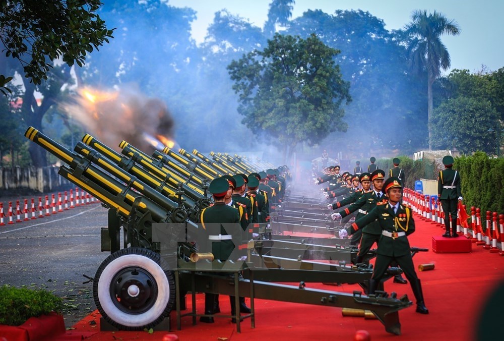 | 21 phát đại bác rền vang chào mừng chuyến thăm cấp Nhà nước tới Việt Nam của Tổng bí thư, Chủ tịch Trung Quốc Tập Cận Bình. Ảnh: TTXVN |