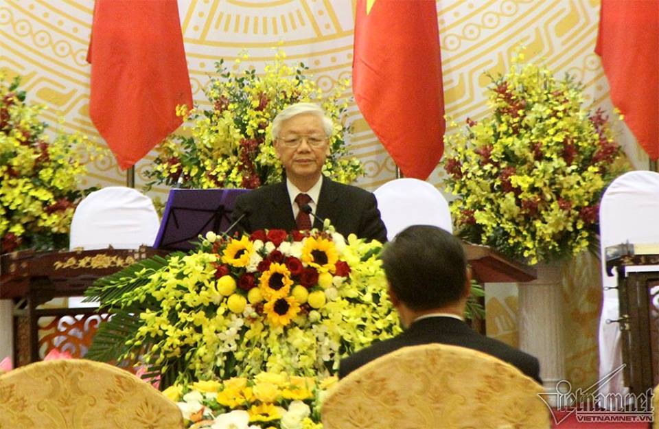 Tổng bí thư phát biểu, Việt Nam và Trung Quốc là 2 nước láng giếng gần gũi, có quan hệ truyền thống lâu đời, có nhiều nét văn hóa tương đồng. Tình cảm của nhân dân 2 nước nảy nở từ trong đấu tranh cách mạng, quan hệ giữa 2 Đảng, 2 nước được Chủ tịch Hồ Chí Minh và Chủ tịch Mao Trạch Đông cùng các thế hệ tiền bối 2 nước dày công vun đắp, cùng trải qua nhiều khó khăn thử thách trở thành tài sản quý giá của nhân dân 2 nước.
