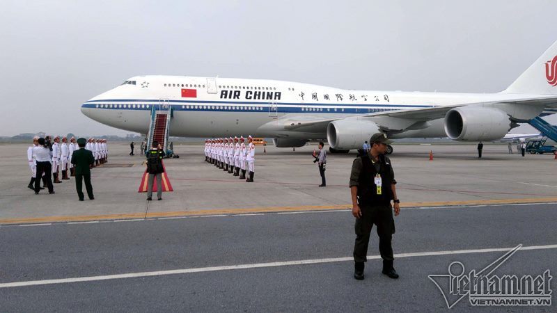 Chuyên cơ chở Tổng bí thư, Chủ tịch Trung Quốc Tập Cận Bình hạ cánh xuống sân bay Nội Bài.