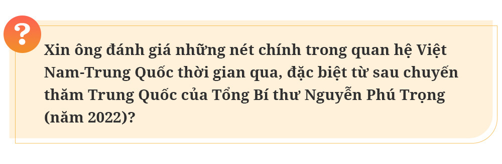 Nhân dịp này VietNamNet đã có cuộc trao đổi với Phó Chủ tịch Hội Hữu nghị Việt Nam-Trung Quốc Nguyễn Vinh Quang. Ông Nguyễn Vinh Quang từng là Vụ trưởng Vụ Trung Quốc - Đông Bắc Á (Ban Đối ngoại Trung ương), Công sứ - Phó Đại sứ Việt Nam tại Trung Quốc. Ông là người nghiên cứu sâu về Trung Quốc và quan hệ Việt Nam – Trung Quốc.