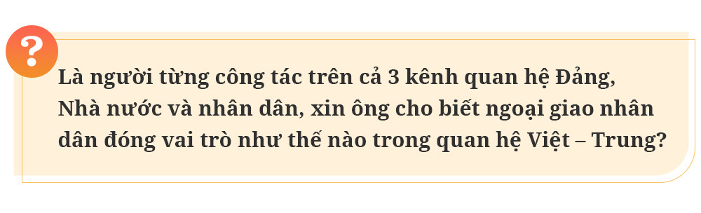 Là người làm công tác ngoại giao nhân dân trong nhiều năm, tôi cho rằng việc phát huy được yếu tố này là rất tốt. Bởi tăng cường hiểu biết lẫn nhau của nhân dân hai nước chính là nền tảng, cơ sở của quan hệ hữu nghị Việt-Trung. Nói hữu nghị mà nhân dân không có giao lưu, không có sự hiểu biết thì hữu nghị đó không phải thực chất và chưa chắc chân thật.