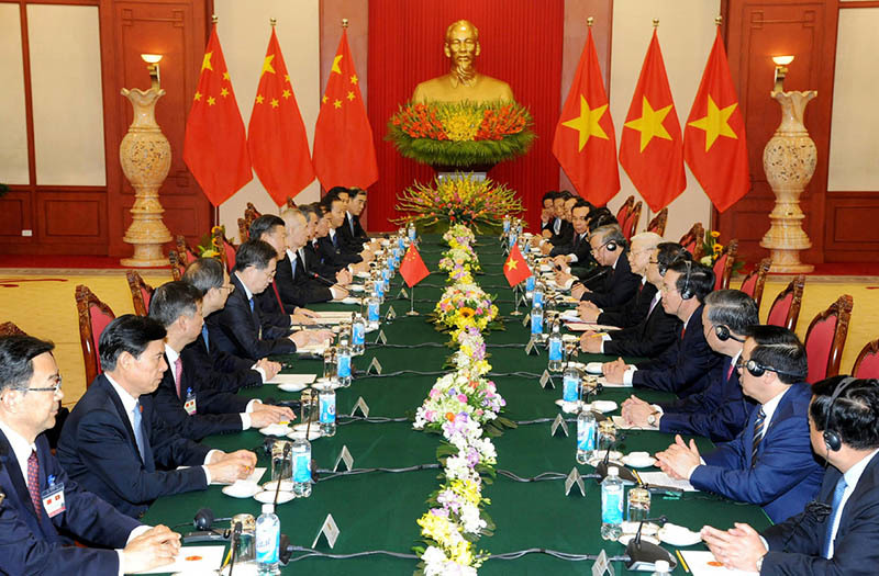 Tổng bí thư, Chủ tịch Trung Quốc Tập Cận Bình bày tỏ tán thành những phương hướng và biện pháp lớn nhằm phát triển quan hệ hai Đảng, hai nước do Tổng bí thư Nguyễn Phú Trọng đề xuất; khẳng định coi trọng việc gìn giữ và phát huy quan hệ hữu nghị truyền thống giữa hai nước; cho rằng, hai bên cần nhìn nhận quan hệ Trung - Việt từ tầm cao chiến lược và tầm nhìn lâu dài, thúc đẩy quan hệ Trung - Việt phát triển ổn định, lành mạnh, bền vững, đem lại lợi ích thiết thực cho nhân dân hai nước, đóng góp cho hòa bình, phát triển và phồn vinh của khu vực. Tổng bí thư, Chủ tịch nước Tập Cận Bình đề nghị hai bên: (i) duy trì tiếp xúc cấp cao thường xuyên, tăng cường trao đổi chiến lược và tin cậy chính trị; (ii) làm sâu sắc giao lưu kênh Đảng; tăng cường giao lưu hợp tác về ngoại giao, an ninh, quốc phòng; (iii) thúc đẩy hợp tác thiết thực, phục vụ công cuộc đổi mới, cải cách mở cửa tại mỗi nước, phát huy vai trò điều phối tổng thể các lĩnh vực hợp tác của Ủy ban chỉ đạo hợp tác song phương; phát huy hiệu quả các cơ chế hợp tác về thương mại, cơ sở hạ tầng, tài chính tiền tệ và kết nối chiến lược phát triển giữa sáng kiến “Vành đai và Con đường” với “hai hành lang, một vành đai kinh tế”, thúc đẩy hợp tác kinh tế-thương mại phát triển cân bằng, bền vững, đạt mục tiêu 100 tỷ USD trong năm 2017; ủng hộ, tạo điều kiện thuận lợi cho hợp tác giữa các địa phương và khu vực biên giới hai nước; (iv) tăng cường giao lưu hữu nghị nhân dân, thúc đẩy hợp tác trên các lĩnh vực về an sinh xã hội, đem lại lợi ích, cải thiện đời sống của nhân dân. Trung Quốc sẽ tiếp tục cung cấp khoản viện trợ không hoàn lại trị giá 600 triệu nhân dân tệ trong ba năm để cải thiện an sinh xã hội các tỉnh phía Bắc Việt Nam; (v) nỗ lực kiểm soát tốt bất đồng trên biển, duy trì hòa bình, ổn định ở Biển Đông; khẳng định Trung Quốc mong muốn cùng ASEAN thực hiện toàn diện, hiệu quả Tuyên bố về ứng xử của các bên ở Biển Đông (DOC), đàm phán, xây dựng Bộ Quy tắc ứng xử của các bên ở Biển Đông (COC); (vi) đề nghị hai bên tăng cường phối hợp tại các cơ chế đa phương như Liên Hợp Quốc, APEC, Trung Quốc - ASEAN, Lan Thương - Mekong, góp phần duy trì hòa bình, thịnh vượng và phát triển của khu vực và thế giới.