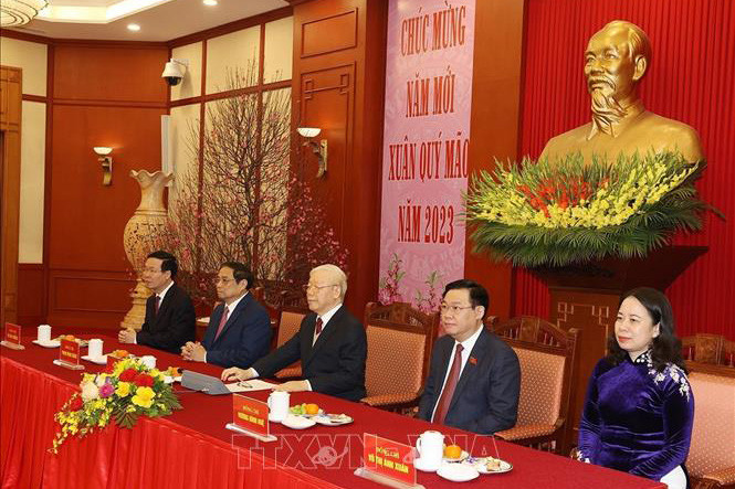 Trong không khí cả nước chào đón năm Quý Mão - 2023, mừng Đảng Cộng sản Việt Nam 93 tuổi (3/2/1930-3/2/2023), sáng 19/1 (tức ngày 28 tháng 12 năm Nhâm Dần), tại Trụ sở Trung ương Đảng, Tổng Bí thư Nguyễn Phú Trọng đã gặp mặt, chúc Tết các đồng chí lãnh đạo, nguyên lãnh đạo Đảng, Nhà nước, Mặt trận Tổ quốc Việt Nam.