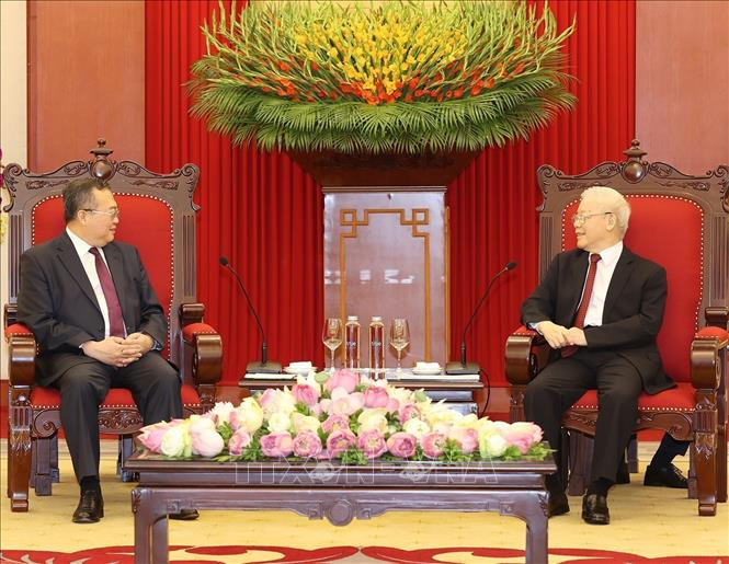 Tổng Bí thư Nguyễn Phú Trọng tiếp Trưởng Ban Liên lạc Đối ngoại TƯ ĐCS Trung Quốc