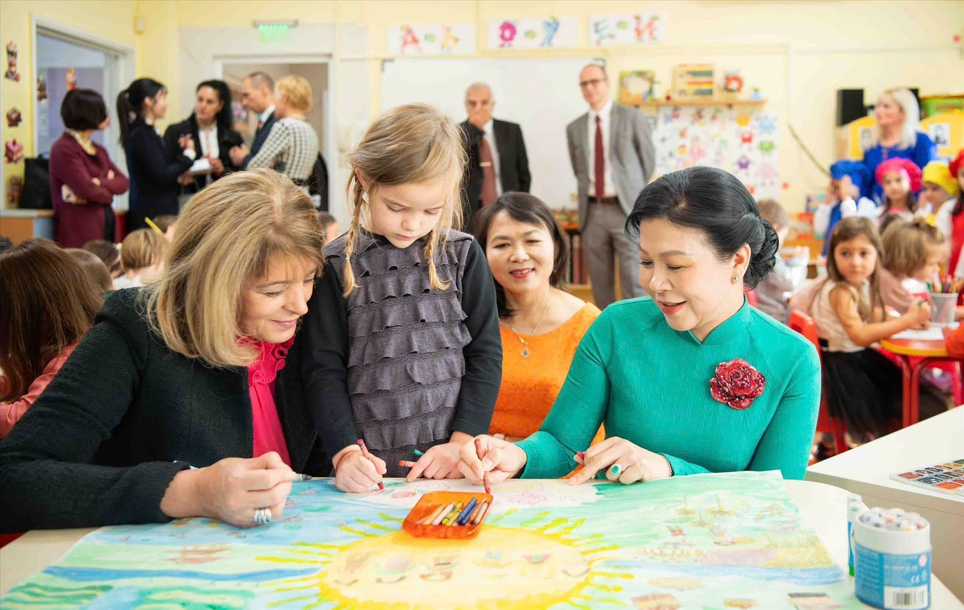 Tổng Bí thư và phu nhân đã dành thời gian tham quan triển lãm 100 năm Mỹ thuật hiện đại, đồng thời tham quan các khu trưng bày tại Bảo tàng. Tổng Bí thư đặc biệt chú ý đến các bảo vật quốc gia đang được lưu giữ tại đây.