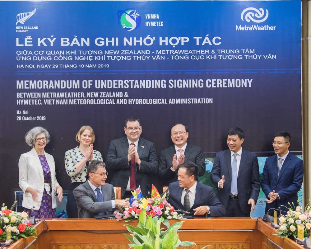 Ngày 29/10/2019, Tổng cục Khí tượng Thủy Văn Việt Nam đã ký biên bản ghi nhớ với Cơ quan Khí tượng Thuỷ văn New Zealand (MetraWeather). Theo bản ghi nhớ này, hai bên sẽ xây dựng và cung cấp các bản tin cảnh báo dự báo thời tiết trên nền bản đồ lên nền tảng đồ họa và các ứng dụng trực tuyến tại Việt Nam, đảm bảo cập nhật thông tin nhanh chóng và cảnh báo kịp thời. MetraWeather sẽ cung cấp các giải pháp công nghệ hàng đầu thế giới cho Tổng cục Khí tượng Thủy Văn Việt Nam, đồng thời đưa dữ liệu địa phương và tri thức chuyên gia để tạo ra các sản phẩm là các video clip dự báo thời tiết. Dự kiến các bản tin dạng số này sẽ được tạo dựng và phân phối tới các đài truyền hình địa phương ở Việt Nam. Hai bên sẽ cùng phối hợp để tạo ra các sản phẩm khí tượng thủy văn phục vụ các ngành kinh tế trọng điểm như: nông nghiệp, hàng hải và hàng không.