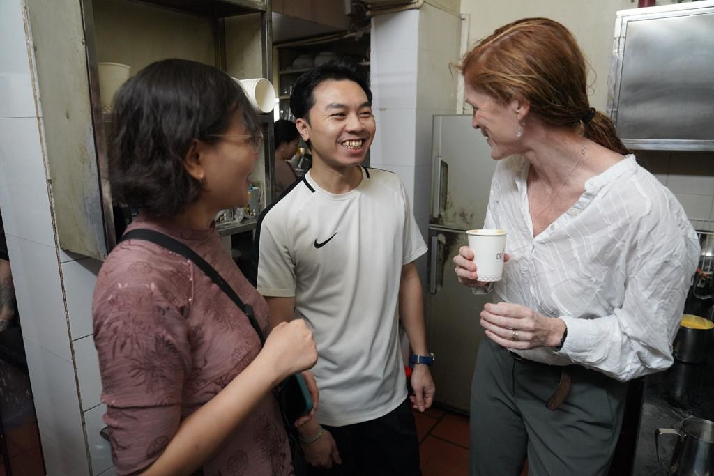 Bà ghé vào một quán cà phê để thưởng thức hương vị cà phê trứng của Việt Nam. Tiếp đó, bà tới thăm Trung tâm Phục hồi chức năng, Bệnh viện Bạch Mai. Từ giữa những năm 1990, USAID đã có hợp tác với Bệnh viện Bạch Mai để hỗ trợ những người bị ảnh hưởng bởi chiến tranh.