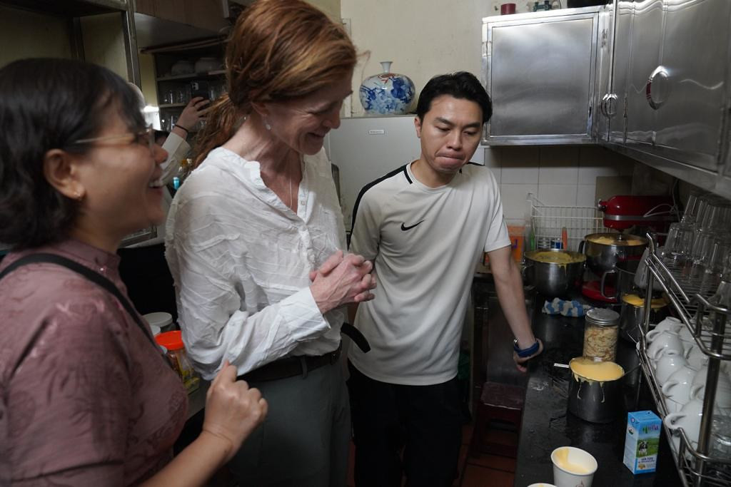 Tại Đại sứ quán Mỹ, bà có buổi gặp toàn thể nhân viên tại đây và gửi lời cảm ơn tới cán bộ nhân viên sứ quán.