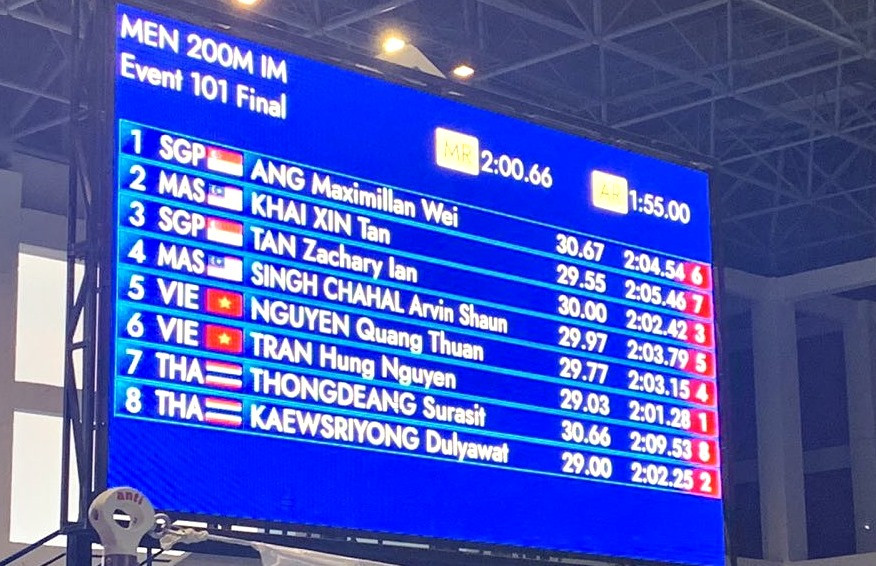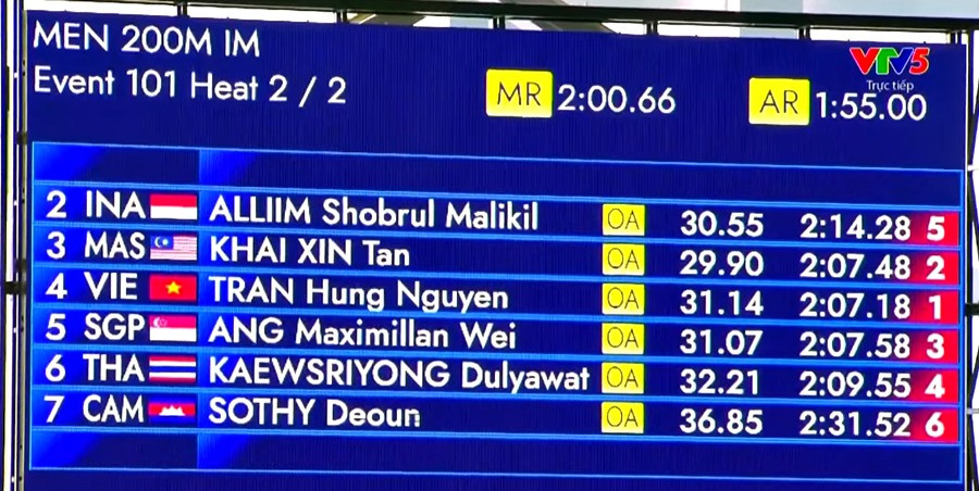 Kình ngư Trần Hưng Nguyên xuất sắc cán đích đầu tiên với thành thành tích 2 phút 01 giây 28 để giành HCV nội dung 200m cá nhân hỗn hợp nam. Trong khi đó, Nguyễn Quang Thuấn với thời gian 2 phút 02 giây 15 - em trai Ánh Viên chỉ về thứ 4.