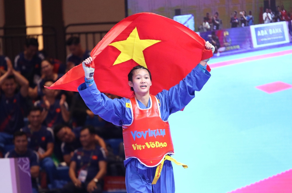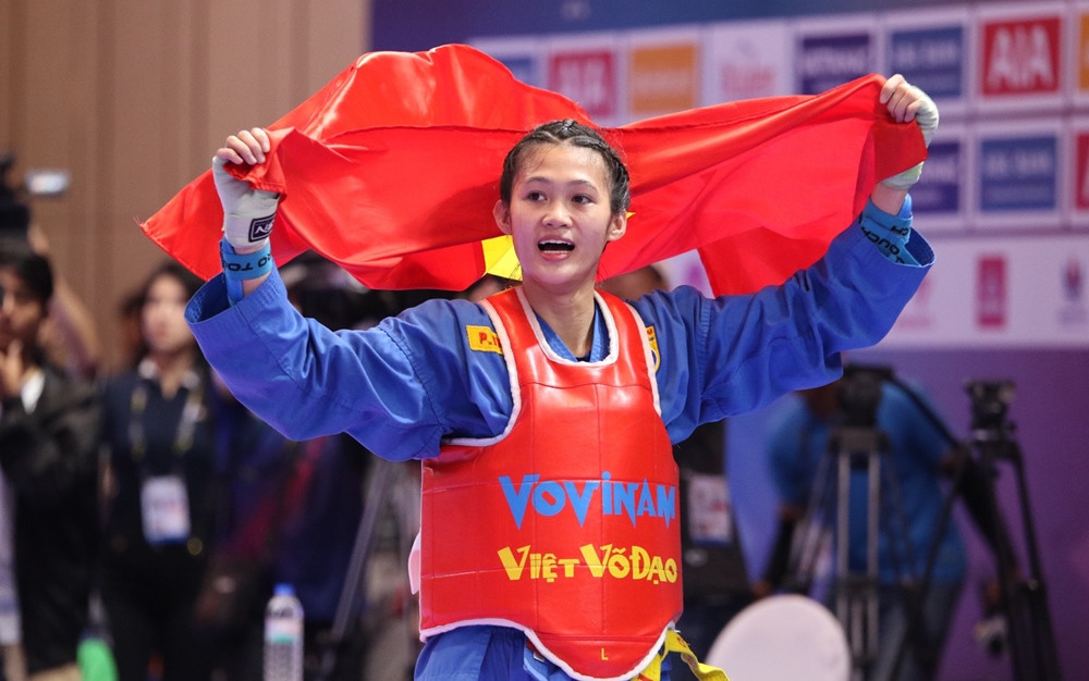 Đến lượt nữ võ sĩ Đinh Thị Hương giành chiến thắng ở chung kết hạng cân dưới 68kg, qua đó mang về cho ĐT Karate tấm HCV thứ 4 tại SEA Games 32. Đại diện của Việt Nam thắng cách biệt 7-4 trước võ sĩ của Philippines.