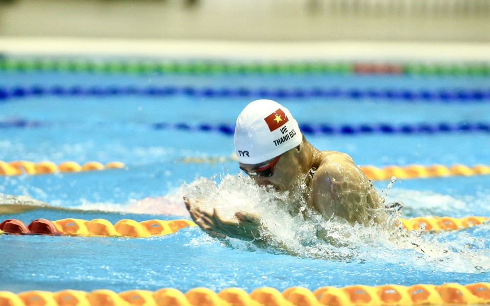 Kình ngư Phạm Thanh Bảo về đích thứ 2 ở lượt bơi thứ 2 vòng loại 100m ếch nam, với thành tích 1 phút 02 giây 72. Anh giành quyền vào chung kết diễn ra trong buổi chiều.