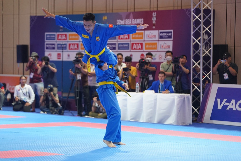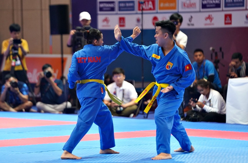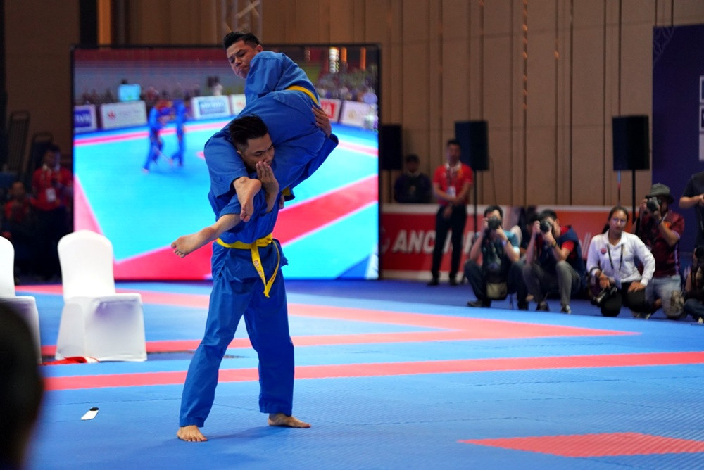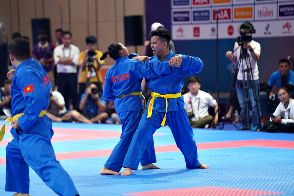 2 võ sĩ Nguyễn Trường Thọ và Đỗ Lý Minh Toàn đạt 267 điểm, xếp thứ 2 nội dung song luyện mã tấu nam để qua đó giành HCB.