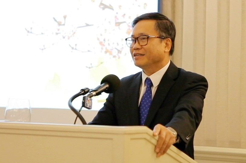 Phát biểu chúc Tết bà con, Đại sứ - Tổng Lãnh sự Hoàng Anh Tuấn đã nêu đậm ý nghĩa văn hóa thiêng liêng của Tết cổ truyền dân tộc đối với những người Việt xa xứ.