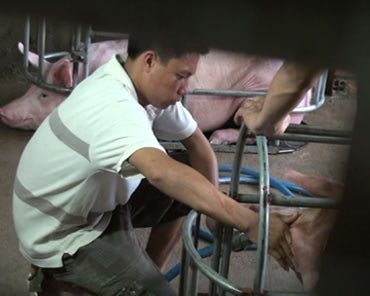 Ông Doanh cho biết việc bơm nước cho heo tăng trọng để kiếm lời là do chi phí quá cao. Bình quân cao nhất là 30 con/ngày, sau khi heo sình lên vì no nước sẽ đem bán tại chợ Tân Xuân, huyện Hóc Môn,TP HCM.
