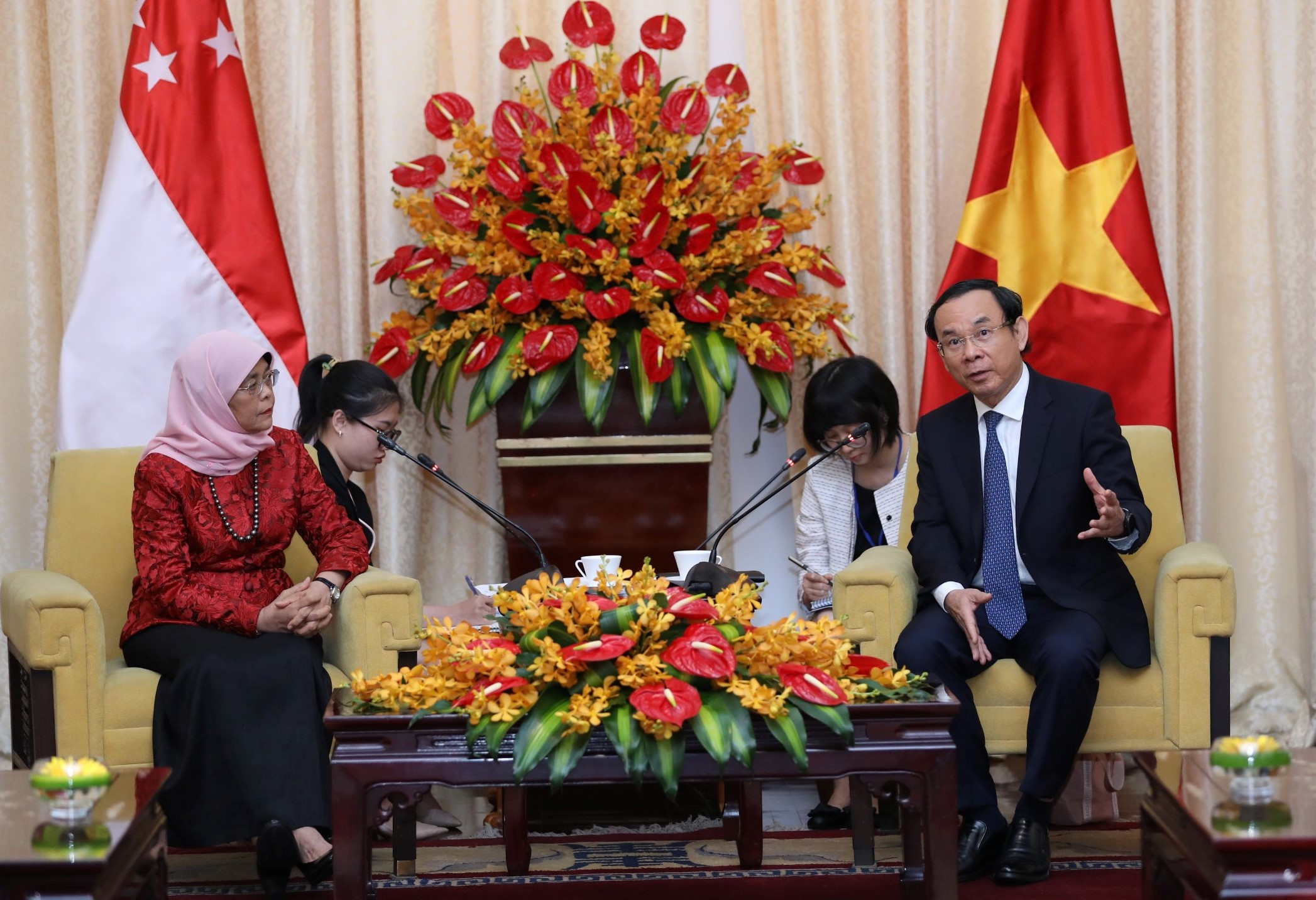 Trao đổi với Tổng thống Singapore, Bí thư Nguyễn Văn Nên cho biết, TP.HCM vừa vượt qua ảnh hưởng của đại dịch Covid-19 và đang trong quá trình phục hồi kinh tế xã hội mạnh mẽ. Những thành quả này có sự đóng góp rất lớn của nhân dân cả nước, nhân dân TP - nhất là đóng góp của các DN trong và ngoài nước, trong đó có các DN Singapore.