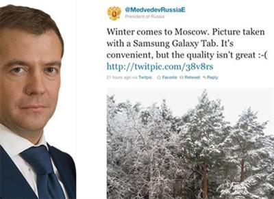 Tổng thống Nga vừa có cuộc viếng thăm đến Hàn Quốc và được trải nghiệm máy tính bảng của Samsung. Ông còn đăng bức ảnh tuyết mùa đông ở Nga chụp từ Galaxy Tab.
