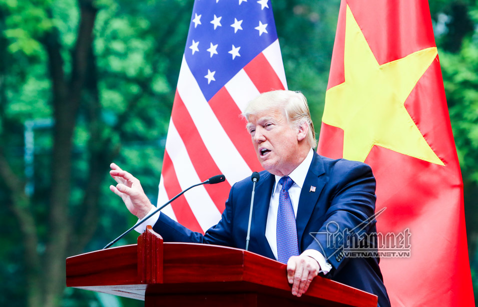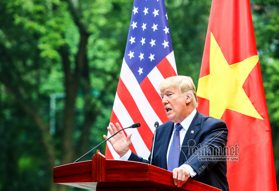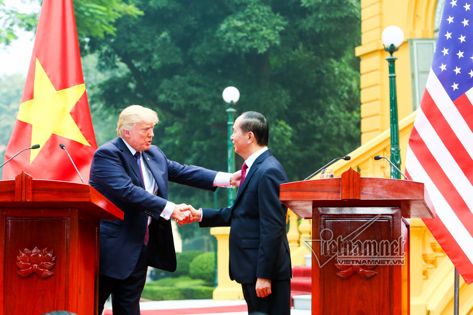 | Tổng thống Mỹ Donald Trump, Chủ tịch nước Trần Đại Quang tại cuộc họp báo chung |