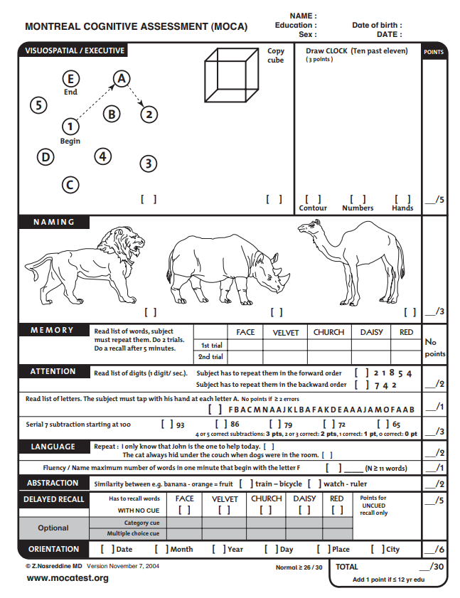 Như đã nói, MoCA gồm khoảng 30 câu hỏi, mỗi câu hỏi 1 điểm mà bạn phải trả lời trong vòng 10 phút. Nếu đạt điểm từ 26 trở lên, bạn được coi là người bình thường. Nếu bạn có điểm dưới mức 22, có thể bạn đang bị suy giảm nhận thức nhẹ và một người mắc Alzheimer thường có điểm dưới 16.