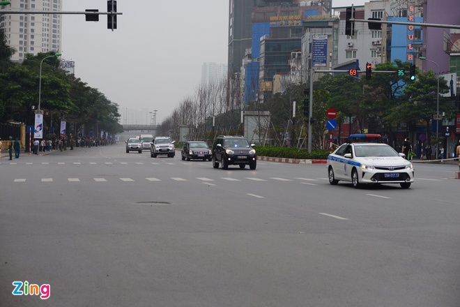15h, đoàn xe ngoại giao của Mỹ di chuyển qua Trần Duy Hưng - Láng ra sân bay trước khi ông Trump rời khách sạn.