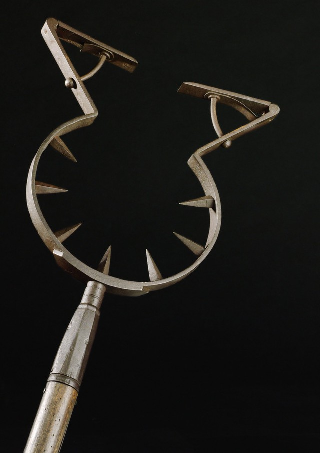 Đây là một loại vũ khí có tác dụng kéo một người đang ngồi trên lưng ngựa xuống và là một công cụ nổi tiếng trong những vụ bắt cóc quý tộc hoặc người thuộc dòng dõi hoàng gia để đòi tiền chuộc vào thời Trung Cổ. Cách hoạt động cũng rất đơn giản, anh em có thể thấy ở phần đầu của công cụ này có hai cái lò lo, khi cần bắt người thì lo xo thu vào, nhưng khi muốn trốn ra thì sẽ bị chặn lại.