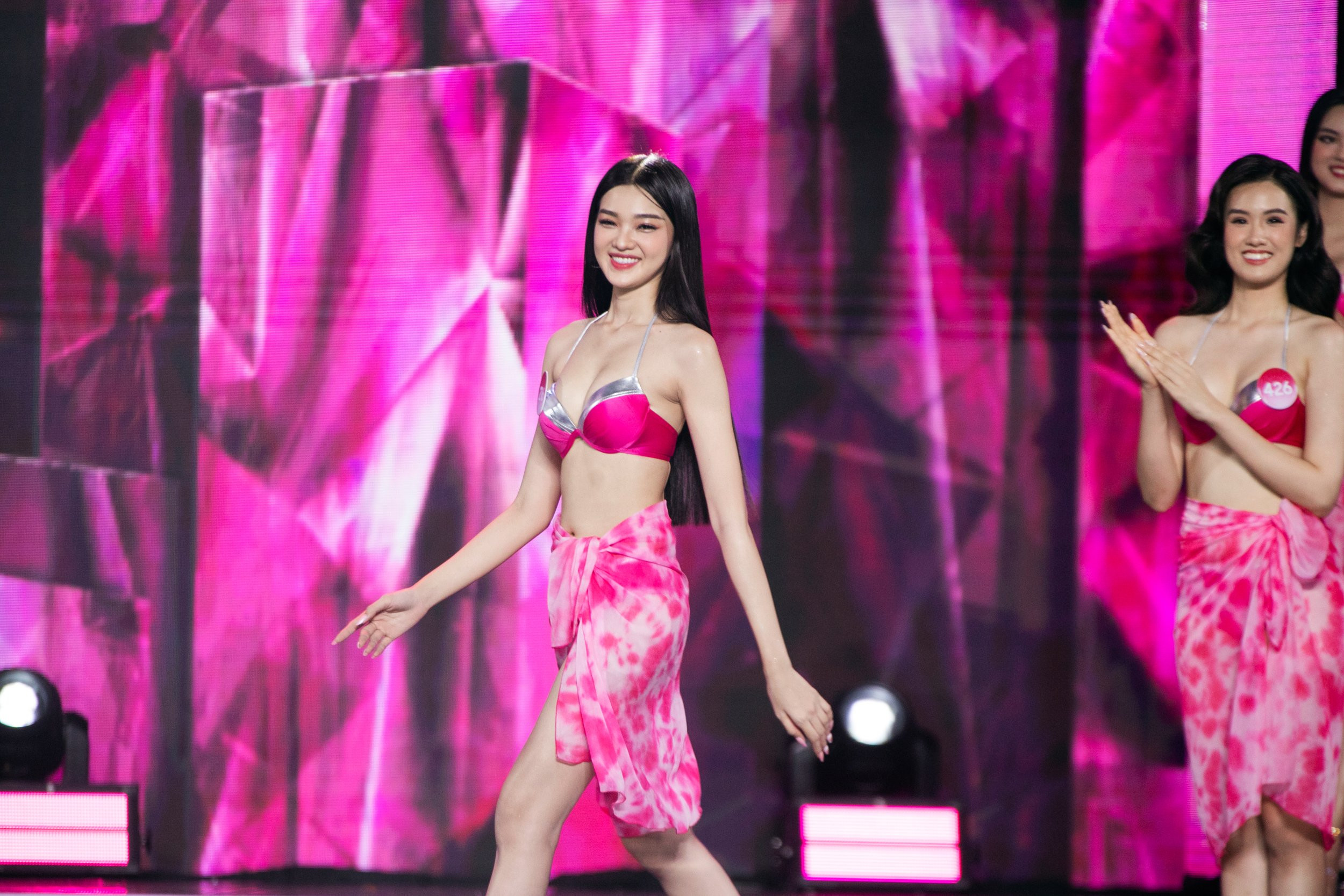 Tối 23/12, đêm chung kết Hoa hậu Việt Nam 2022 chính thức diễn ra tại nhà thi đấu Phú Thọ, TP. HCM. Được lựa chọn từ 35 cô gái, top 20 thí sinh xuất sắc nhất đã được gọi tên.Dàn thí sinh năm nay được đánh giá vừa có nhan sắc, vừa có học thức, ngoại ngữ tốt. Trong đêm chung kết, phần thi trình diễn áo tắm của top 20 là màn luôn được mong đợi. Trần Thị Bé Quyên (SBD 216) là một trong những thí sinh có gương mặt khả ái nhất cuộc thi năm nay. Người đẹp gốc Bến Tre cao 1,74 m, có số đo 3 vòng: 77-59-91 cm, hiện là sinh viên ĐH Công nghiệp TP. HCM. Bé Quyên phát huy thế mạnh chụp hình và trình diễn xuyên suốt cuộc thi, lọt Top 3 Người đẹp Biển. Là một trong những thí sinh có gương mặt đẹp và nhỏ tuổi nhất, Phạm Giáng My (SBD 114) sinh năm 2004, đến từ Ninh Bình. Cô cao 1,7 m, có số đo 3 vòng: 75-55-89 cm, hiện là sinh viên năm nhất ĐH Văn hóa Hà Nội. Giáng My cũng là top thí sinh được đánh giá cao trong đêm chung kết.Thí sinh Hoàng Hương Giang (SBD 177) cũng có phần thể hiện tự tin trong màn trình diễn áo tắm trong đêm chung kết. Trịnh Thùy Linh (SBD 146) là một trong những ứng cử viên hàng đầu cho vương miện Hoa hậu Việt Nam 2022. Cô sinh năm 2002, đến từ Hà Nội, cao 1,72 m, có số đo 3 vòng 87-58-95 cm, hiện là sinh viên ĐH Kinh tế Quốc dân. Người đẹp được khen ngợi bởi nhan sắc ngọt ngào cùng vóc dáng thon gọn, quyến rũ cùng nụ cười khả ái.Thí sinh Trần Nguyễn Phương Thy (SBD 445). Phương Thy sở hữu chiều cao nổi bật 1,75 m, số đo 3 vòng 82-61-93 cm.Các thí sinh top 20 được đánh giá tốt về hình thể, sự tự tin và có bản lĩnh sân khấu. Sau phần thi áo tắm, top 10 thí sinh xuất sắc nhất đã được gọi tên để tiếp tục vào vòng thi tiếp theo. Những cái tên không ngoài dự đoán được đi tiếp như: Trần Thị Bé Quyên (SBD 216), Trần Lê Mai Chi (SBD 052), Đinh Khánh Hòa (SBD 088), Huỳnh Thị Thanh Thủy (SBD 005), Phạm Giáng My (SBD 114)...