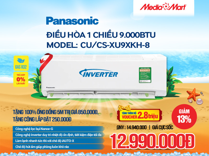 Điều hòa Panasonic 1 chiều Inverter 9.000BTU CU/CS-XU9XKH-8
